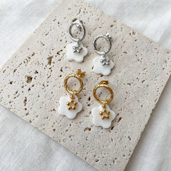 Pendentif : Fleur nacrée et pendentif fleur en acier inoxydable