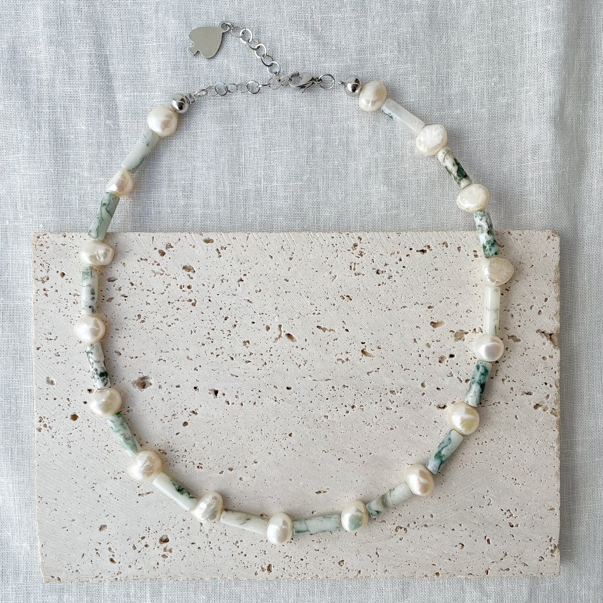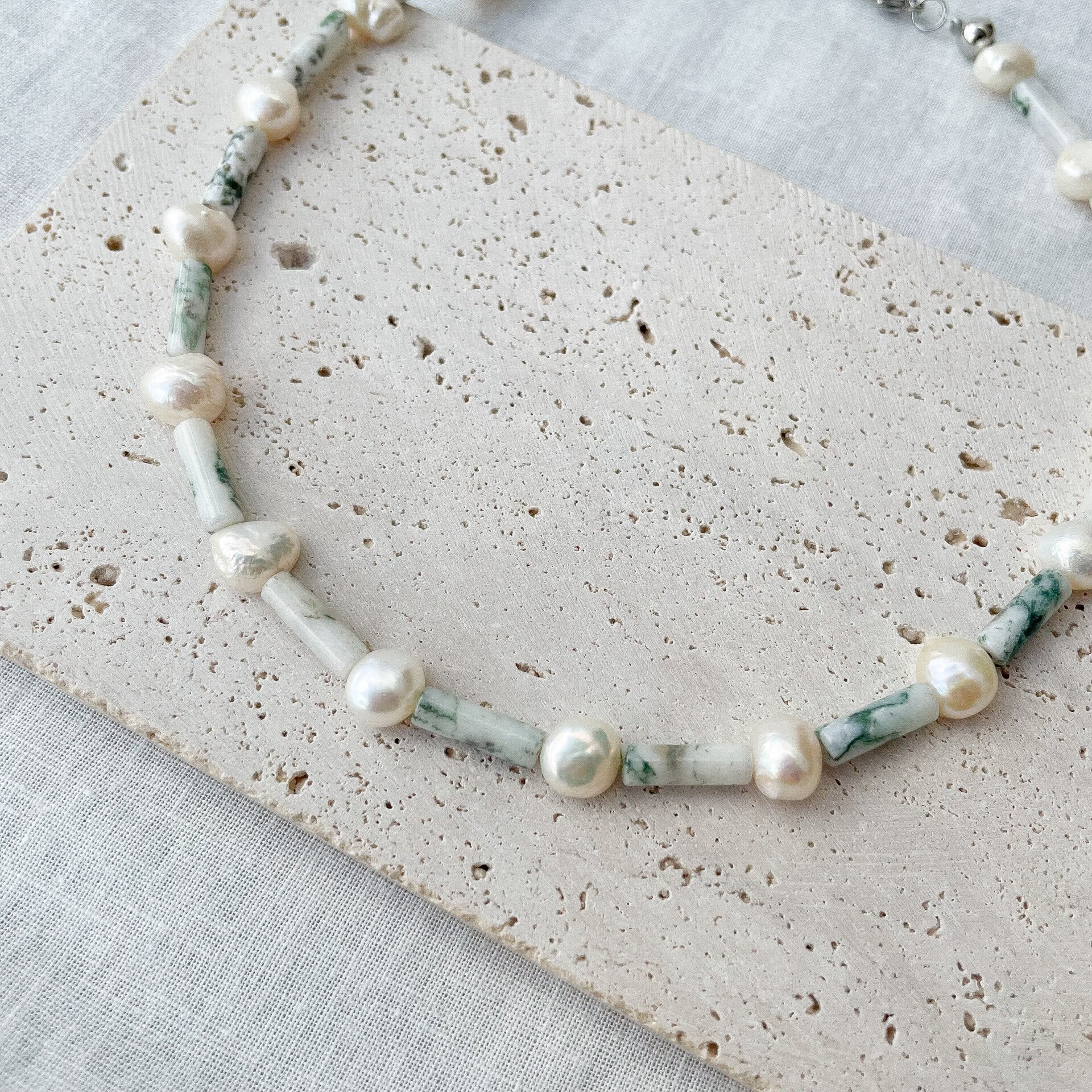 Matériaux principaux : Perles d'eau douce naturelles, pierres naturelles, acier inoxydable